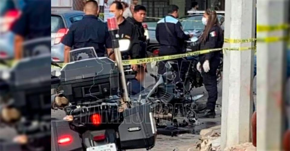 Policía motorizado se pasa alto y es arrollado en el centro de Tampico