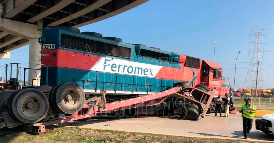 Tren se lleva de "corbata" a tráiler en el Puerto de Altamira