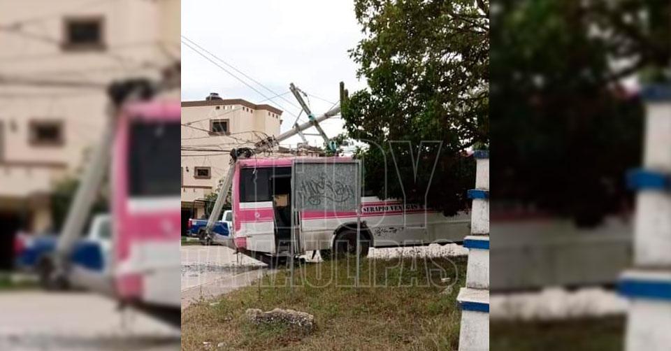 Autobús se va de reversa e impacta poste en la Bahía de Altamira