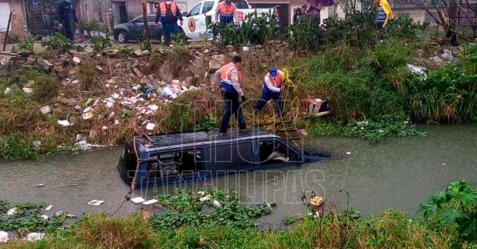 Cae con su camioneta a canal pluvial en los límites con Madero