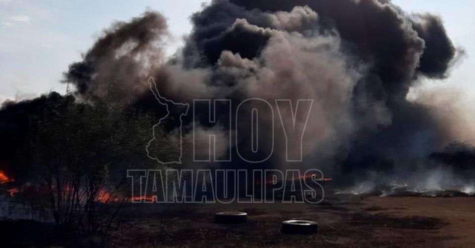 Incendio de zacatal pone en riesgo cableado de alta tensión en Altamira