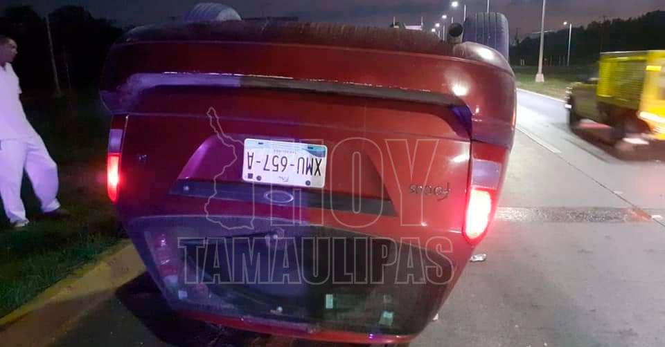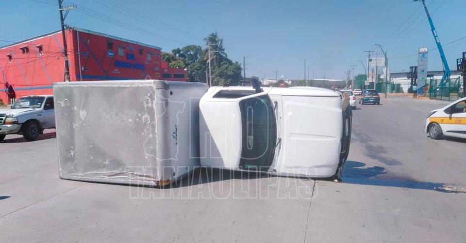 Choque con volcadura deja daños materiales en Altamira
