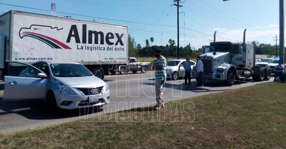 Tráiler impacta a automovilista en Altamira