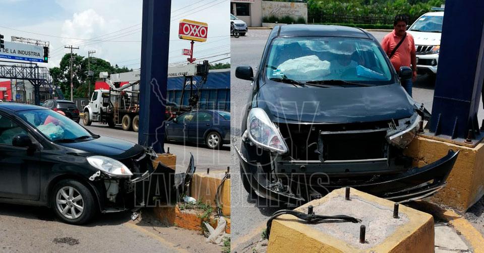 “Alocado” conductor se impacta contra base de semáforo en Altamira