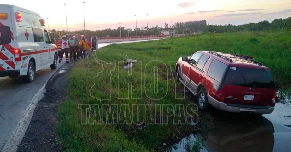 Derrapa camioneta y caen a laguneta en Altamira, hay dos lesionados