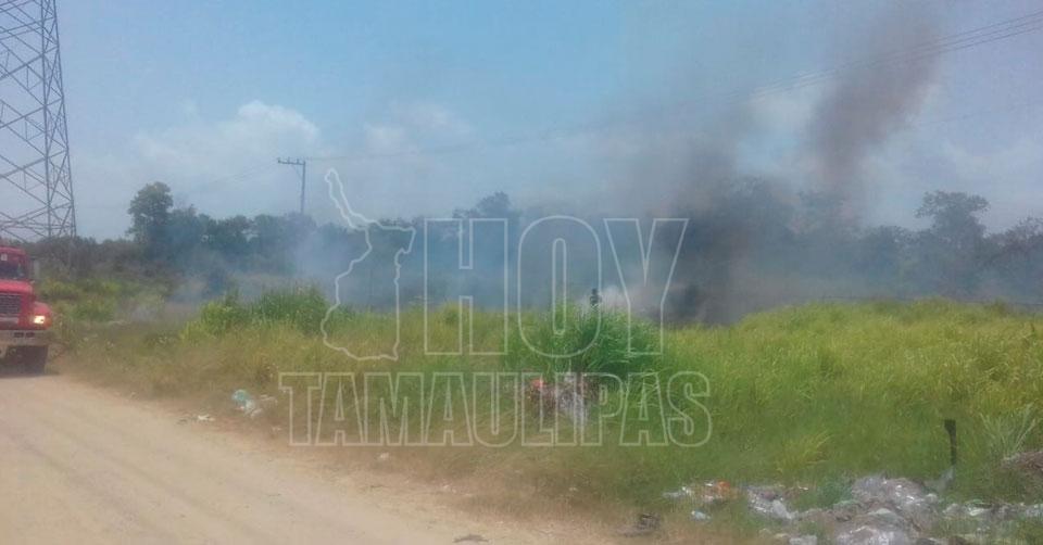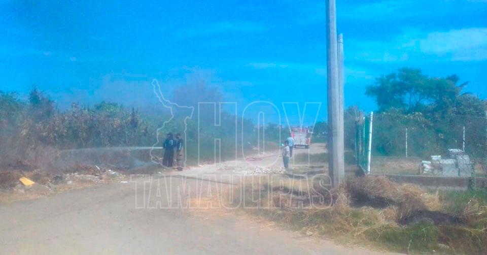 Se registra incendio de zacatal a lado de un fraccionamiento de Altamira