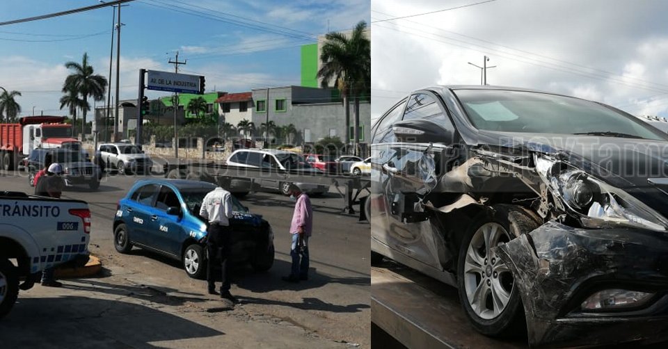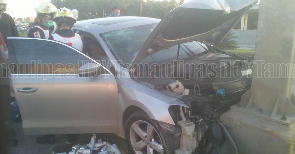 “Alocado” conductor se impacta contra base de semáforo en Altamira
