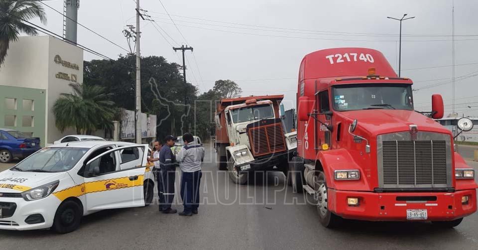 Camión se queda sin frenos y choca contra taxi y tráiler en Altamira