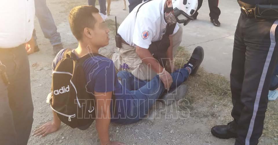 Evita atropellar a familia y cae con camioneta a canal en Tampico