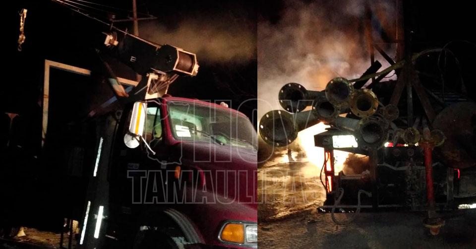 Grúa se incendia a tocar cables de alta tensión en Altamira