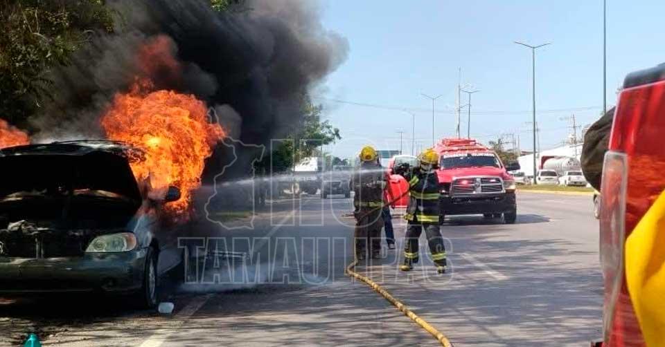 Camioneta que transportaba ropa se incendió en la Avenida de la Industria en Altamira