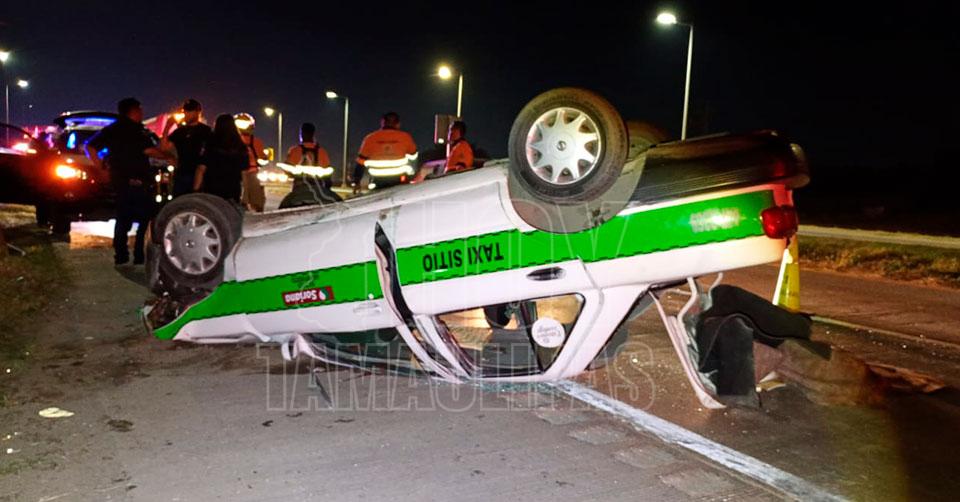 Taxi de sitio vuelca en Altamira; dos personas resultan lesionadas