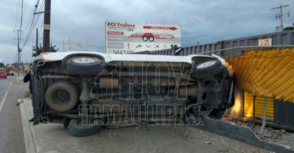 Veloz camioneta se salió del camino y volcó sobre la banqueta en Altamira