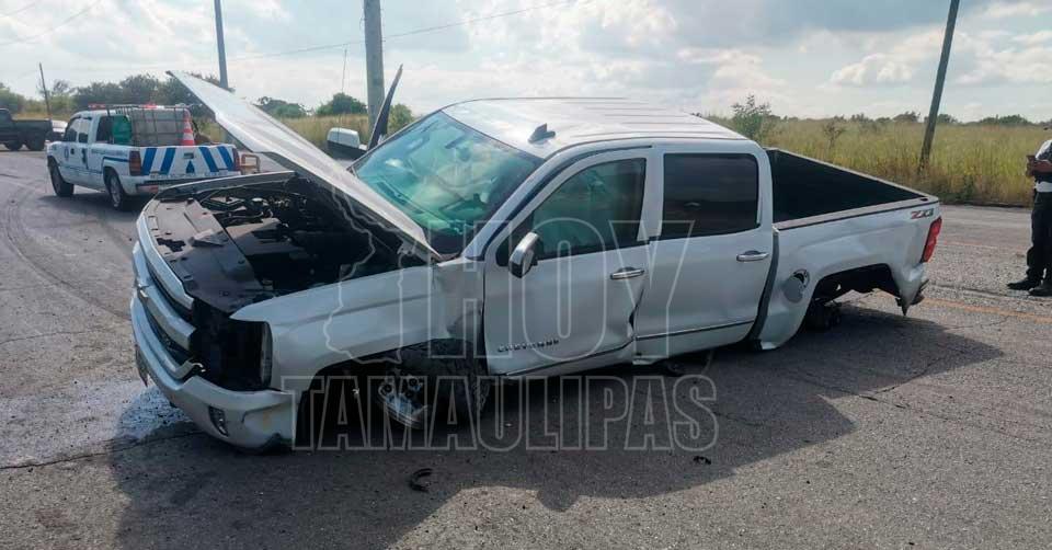 Camioneta doble cabina se impactó en la base de un poste en Altamira