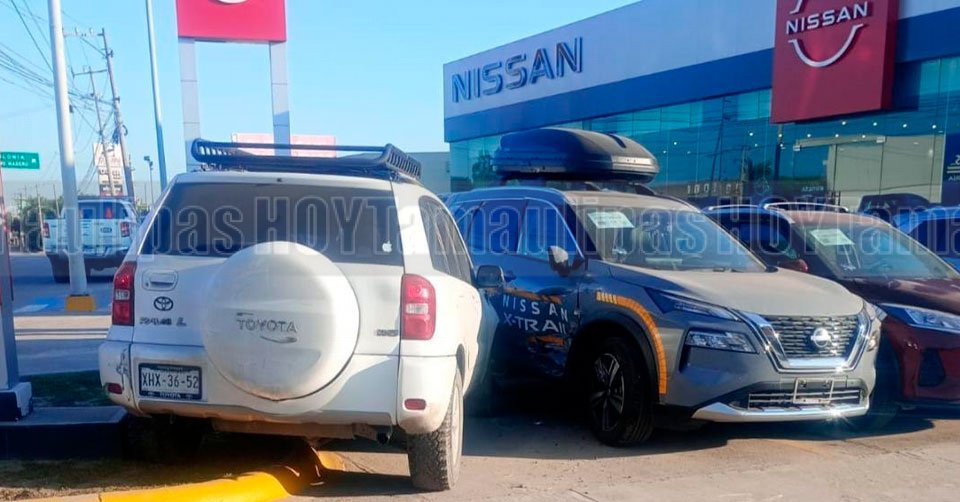 Se ensarta contra vehículos en exhibición de la Agencia Nissan en Altamira