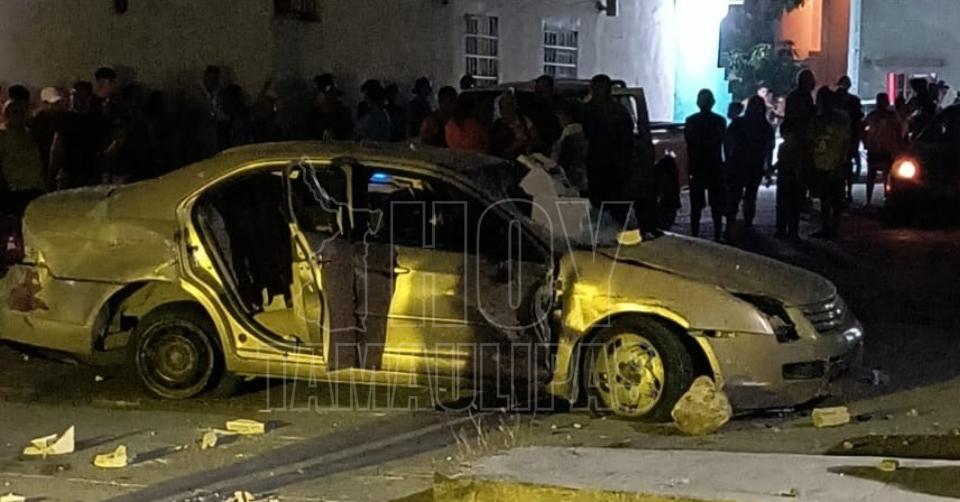 En Altamira: Veloz taxista destrozó su vehículo al estrellarse contra la base de un poste