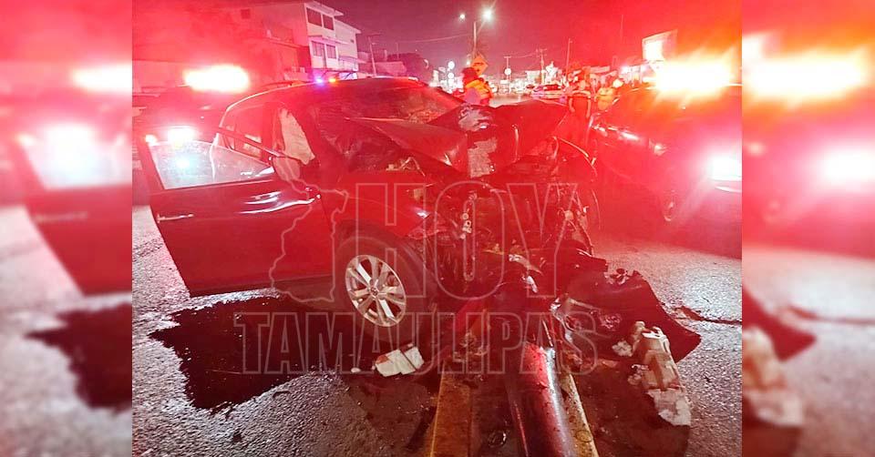 Jovencita terminó prensada en un automóvil que se estrelló contra una barda en Altamira