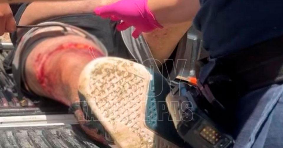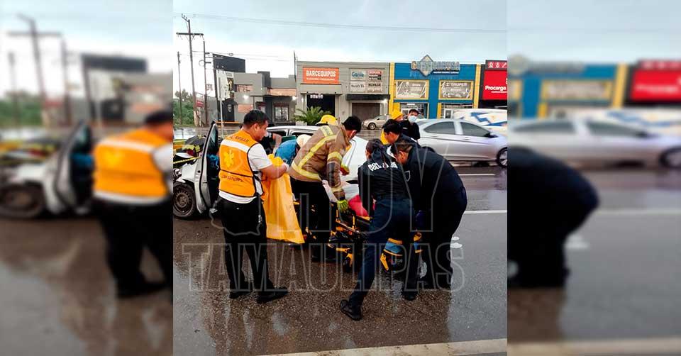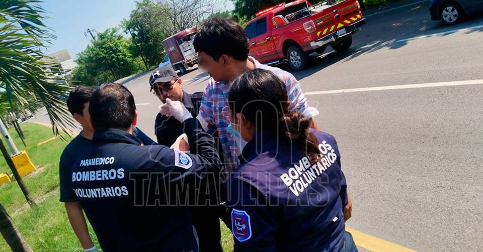 Pedazo de plástico le atravesó el brazo a motociclista al impactarse con un auto en Altamira