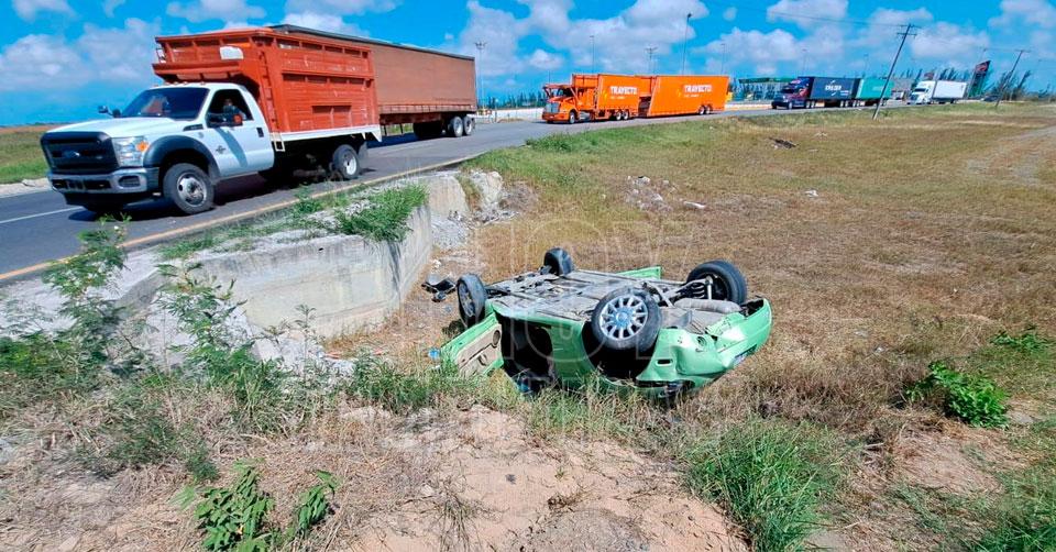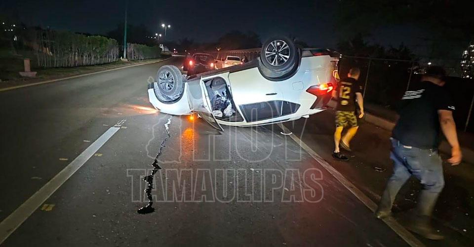 Veloz conductor volcó su camioneta en la Avenida de la Industria en Altamira