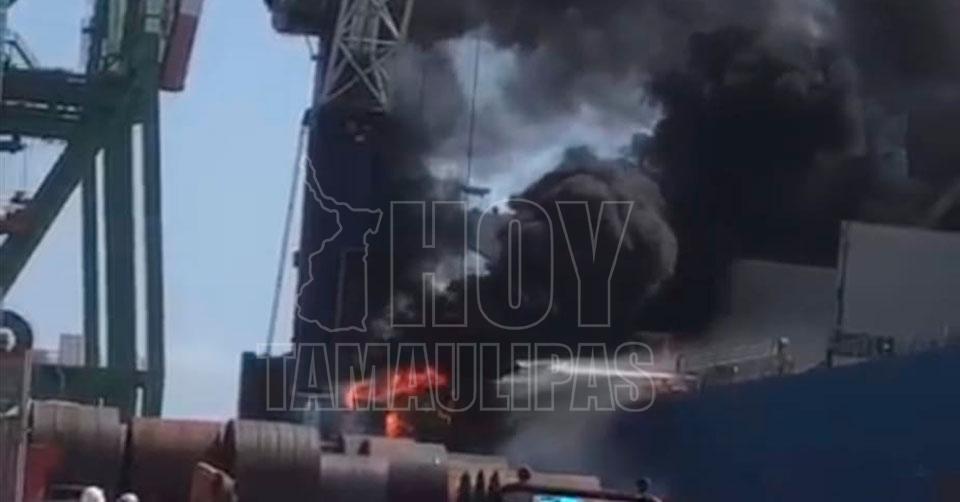 Se incendia grúa al interior del Puerto Industrial de Altamira