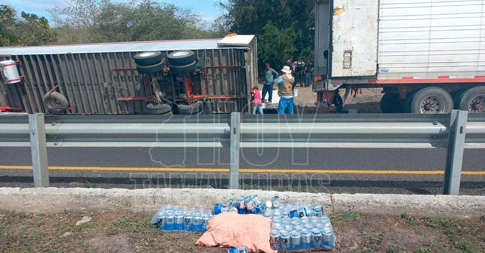 Vuelca camión con 10 toneladas de cerveza en Altamira
