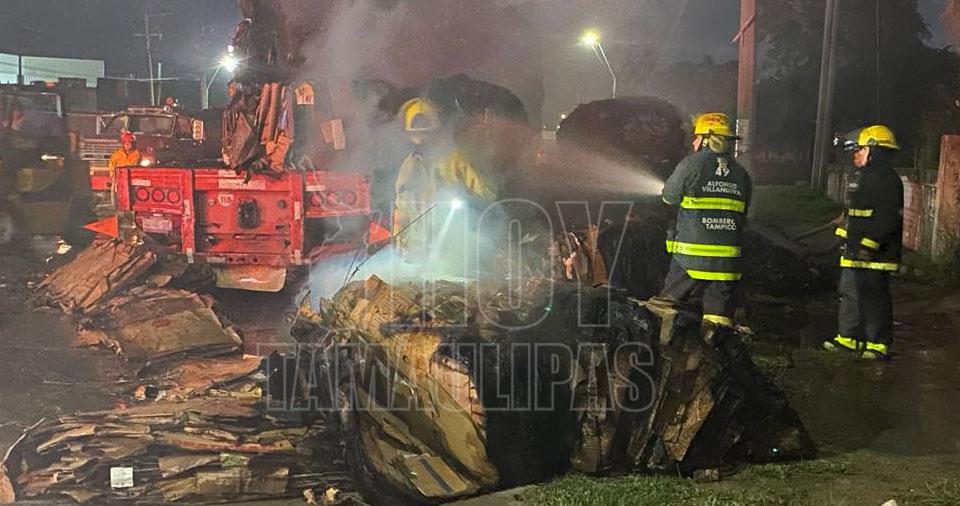 En Altamira: Incendio en pacas se cartón moviliza a los bomberos