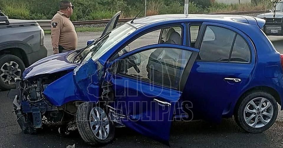 Mujer quedó prensada tras estrellarse contra una pipa en la Tampico-Mante