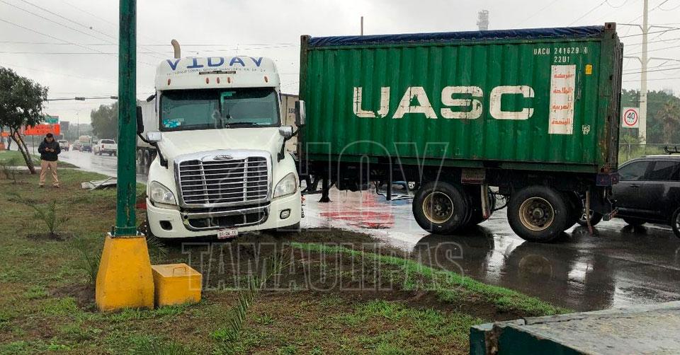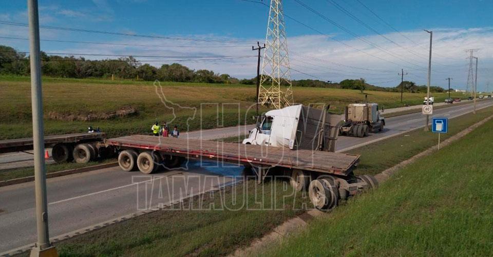 Para evitar un choque, trailero derrapó sobre la Avenida de la Industria en Altamira