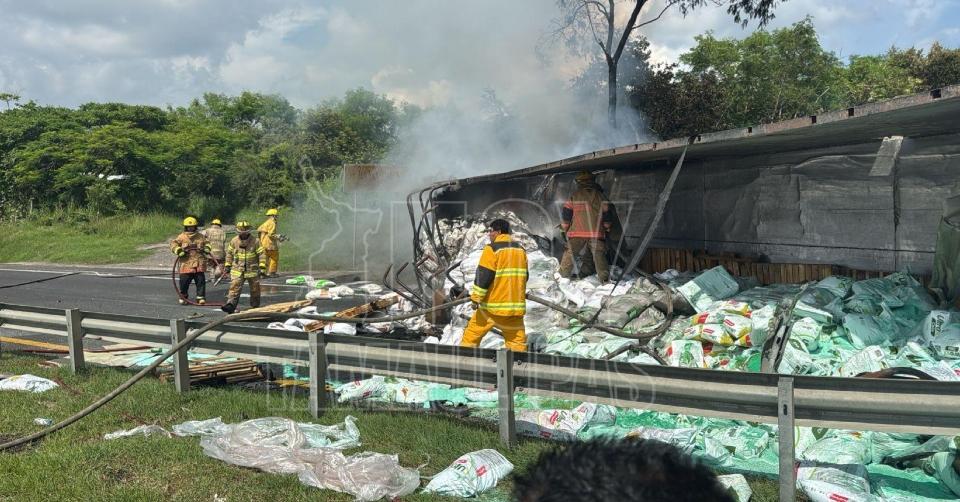 Trailero muere calcinado al volcar e incendiarse su vehículo en Altamira