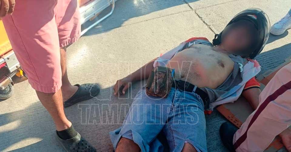 Motociclista termina hospitalizado tras derrapar al esquivar auto en Altamira