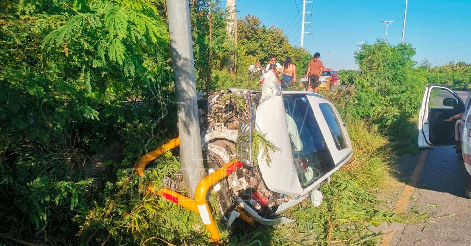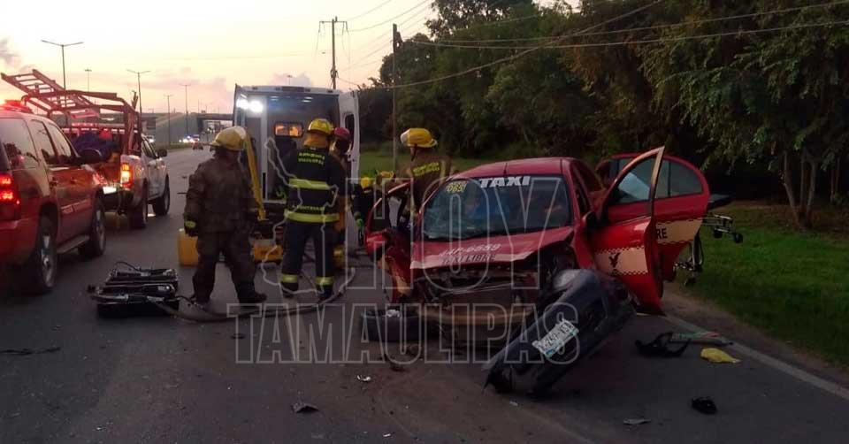 Mujer queda atrapada tras choque de taxi en Altamira; conductor dormitó al volante