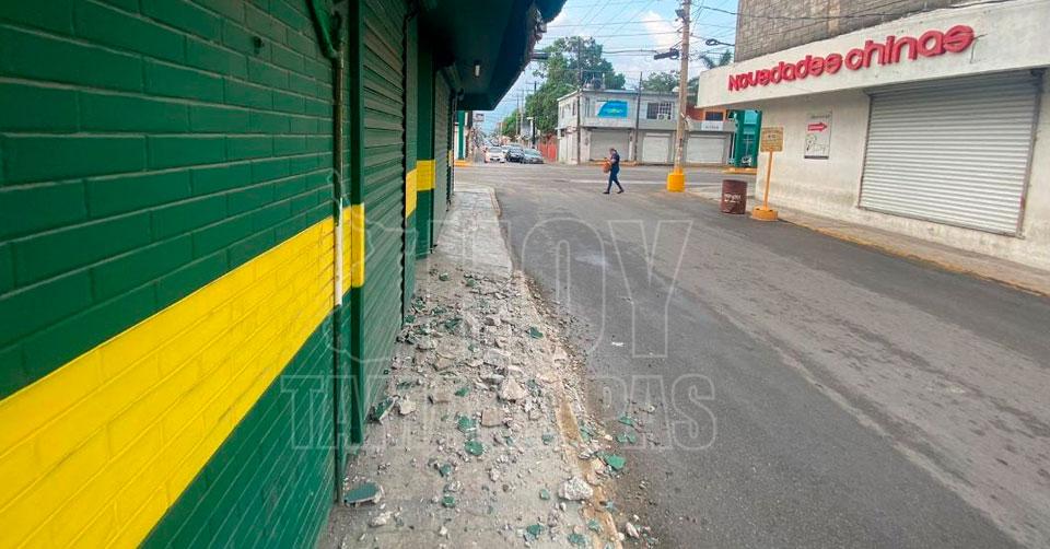 Cae pedazo de marquesina de local comercial en el centro de Altamira