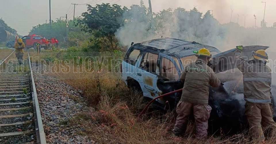 Camioneta se incendió después de ser impactada por el tren en Altamira