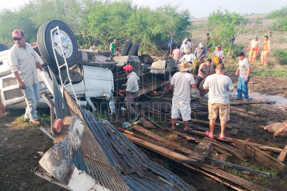 Rapiñan cerdos al volcar camión en la González-Zaragoza
