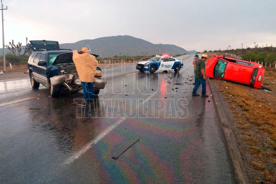 Choque con volcadura deja tres lesionados en Tula, Tamaulipas