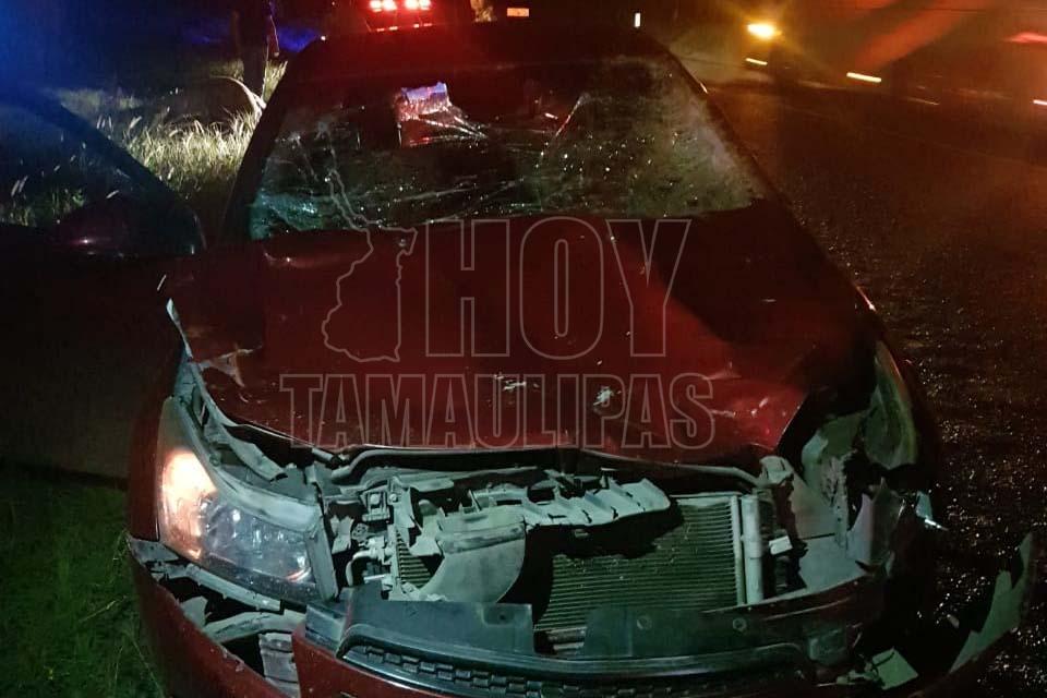 Conductor choca contra vaca y pulveriza su automóvil en Güémez