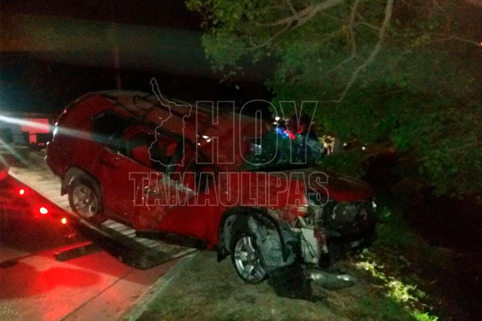 Pareja se salva de morir al estrellarse contra árbol en el Mante