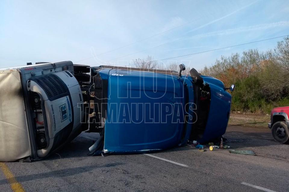 Vuelca tráiler cargado con fruta en la carretera a San Fernando