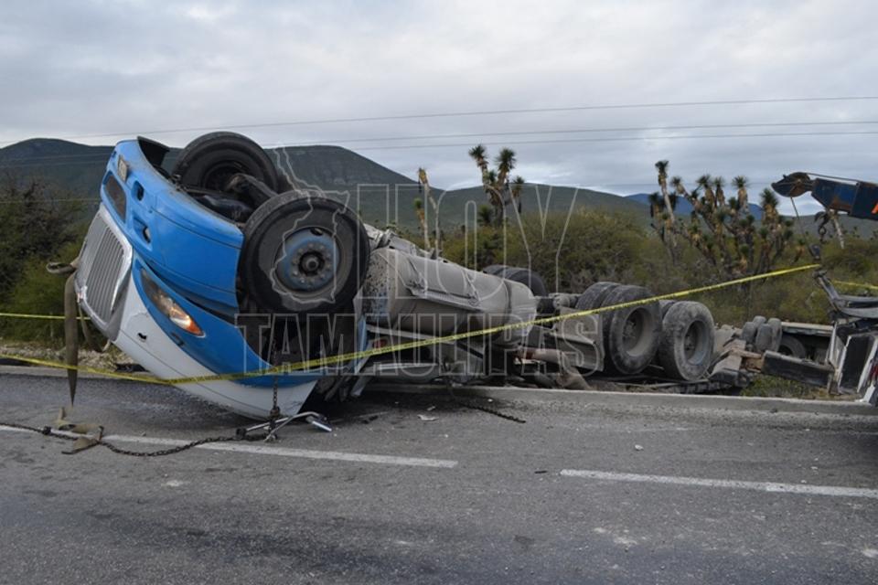 Muere chofer de tráiler tras volcarlo en la Tula-Victoria