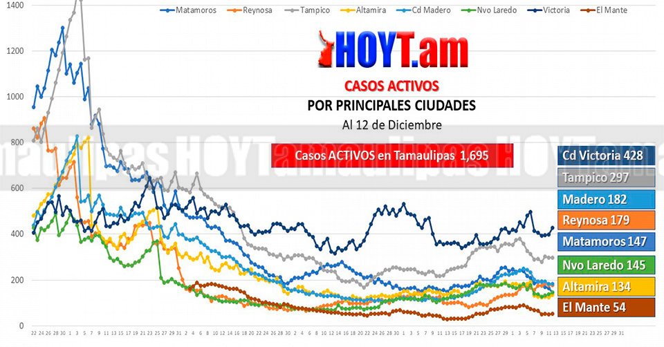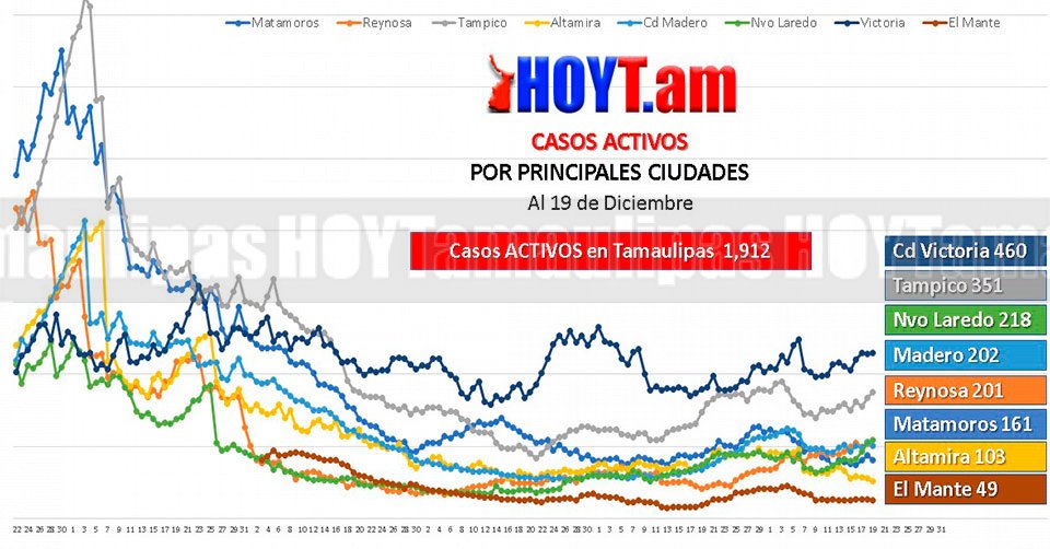 Cae en 16.91% curva de casos activos de Covid-19 en Tamaulipas