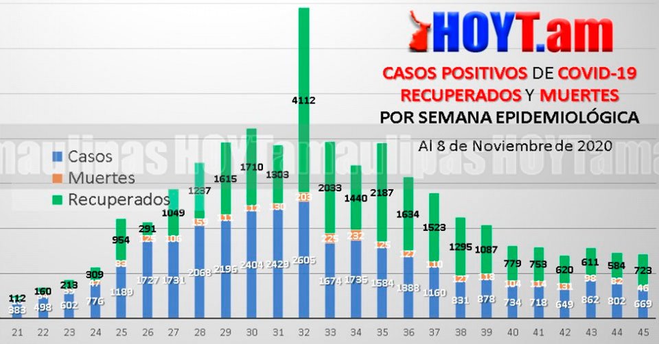 Bajan muertes por Covid-19 en Tamaulipas en un 13.04%