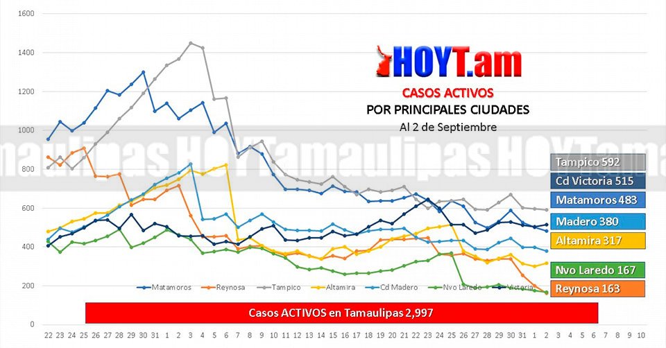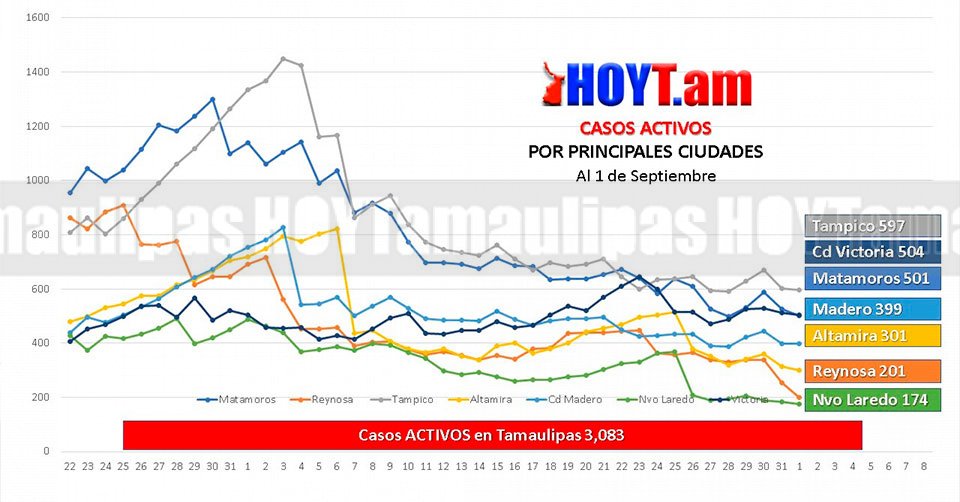 Casos Activos Covid-19: Reynosa a la baja; Ciudad Victoria al alza