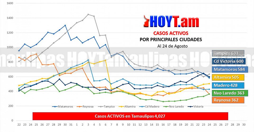 Confirman 232 nuevos casos de Covid-19 y 24 defunciones en Tamaulipas