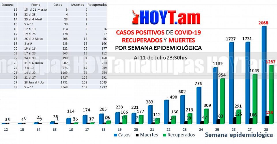 Covid-19: Imparable y mortal en Tamaulipas; 2,068 contagios y 159 muertes