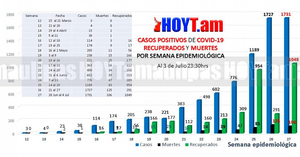 Covid-19 ya mató a 535 en Tamaulipas; hoy fueron 18 muertos y 136 infectados