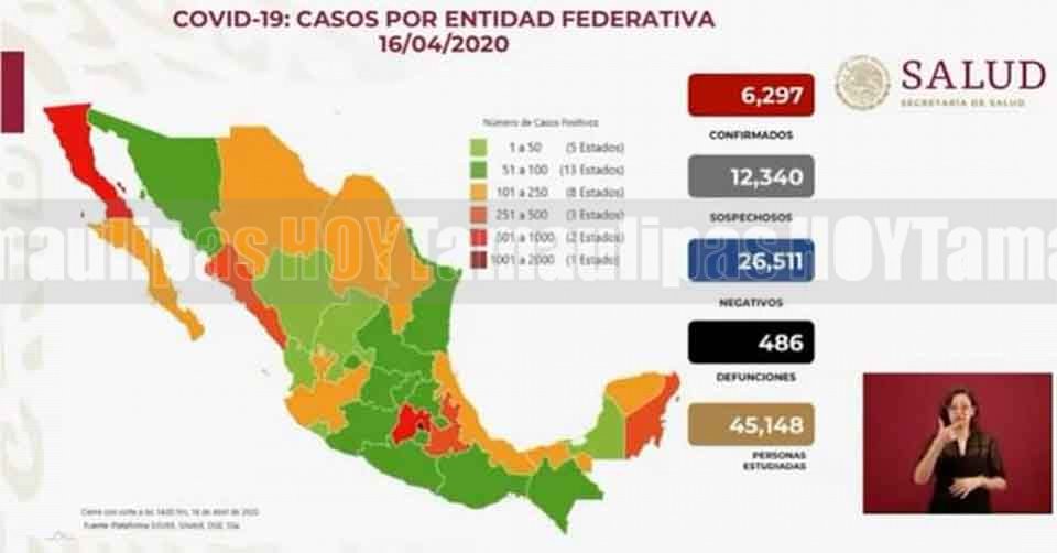 México suma 6,297 casos de Covid-19 y 486 defunciones