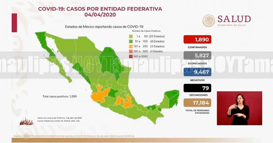 México registra 79 defunciones y mil 890 casos de Covid-19