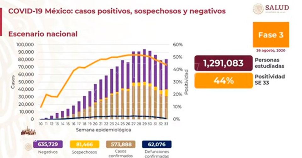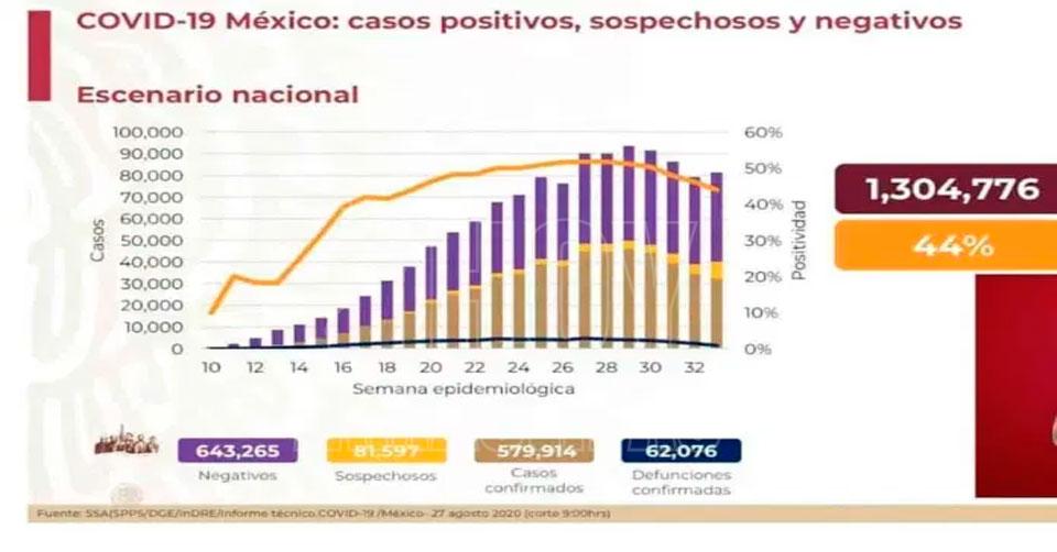 Alcanza México los 62 mil 594 decesos y más de 579 mil contagios de Covid-19