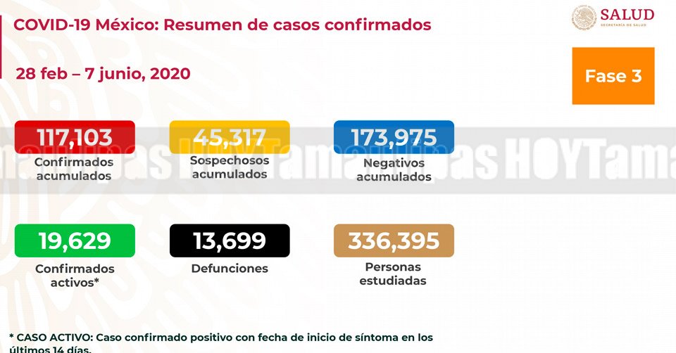 Suma México 117,103 casos de COVID-19 y 13,699 defunciones: Salud