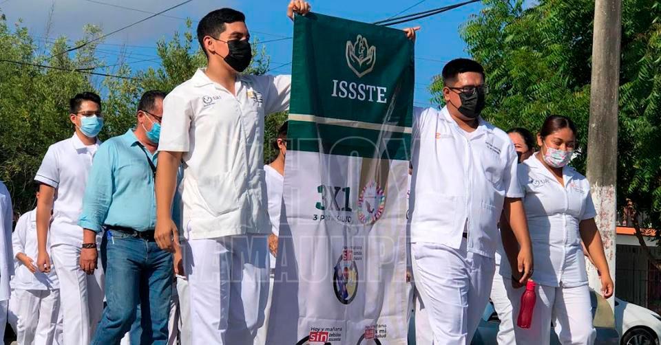 Marcha personal del ISSSTE en Matamoros para hacer conciencia entre la población